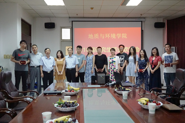 6月29日下午,地质与环境学院在雁塔校区行政楼613举办了2018届研究生毕业欢送会。学院党政领导、教师代表及2018届全体研究生参加了欢送会。毕业生代表地质工程硕士陈达、在职工程李小雪代表同学回顾了三年的学校生活并对学校及老师的培养表达了感谢;薛喜成教授代表教师祝贺同学们顺利毕业并提出了殷切希望;院长王生全为毕业生送上祝福:“愿大家顺利启航,不断学习,严谨工作,享受生活,也希望大家变成更好的自己。”随后,学院颁发了优秀毕业生及优秀硕士学位论文,并为所有毕业生颁发了刻有学生姓名和学院院徽的石质印章。最后,大家一起观看了学院精心制作的毕业纪念视频。三年的欢笑与泪水的交织,幸福与回忆的交错,浓浓的情谊弥漫在了整个会议室内。